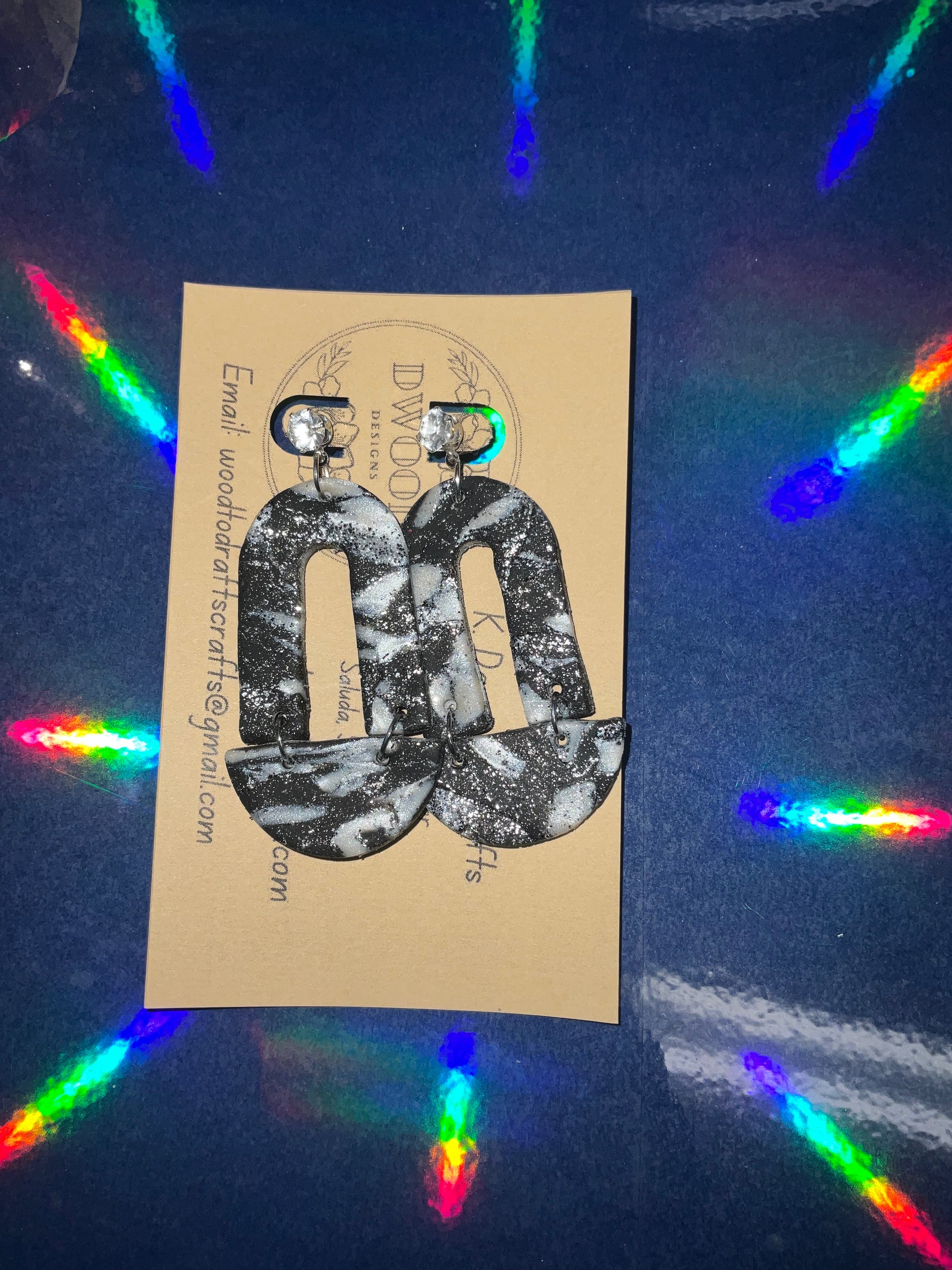 Black and Pearl Marble Geometric Shaped Clay Earrings