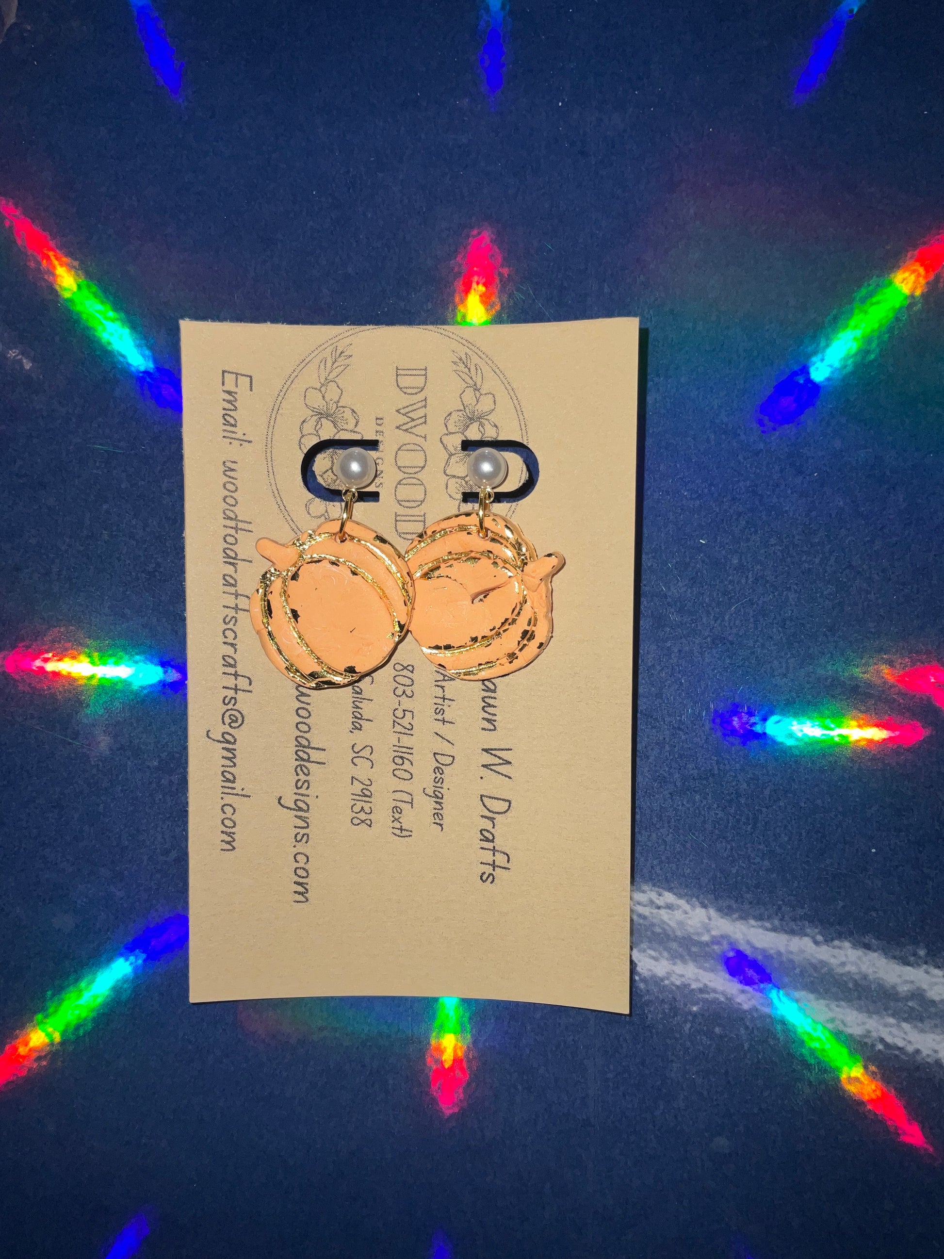 Gold Flake Pumpkin Clay Earrings