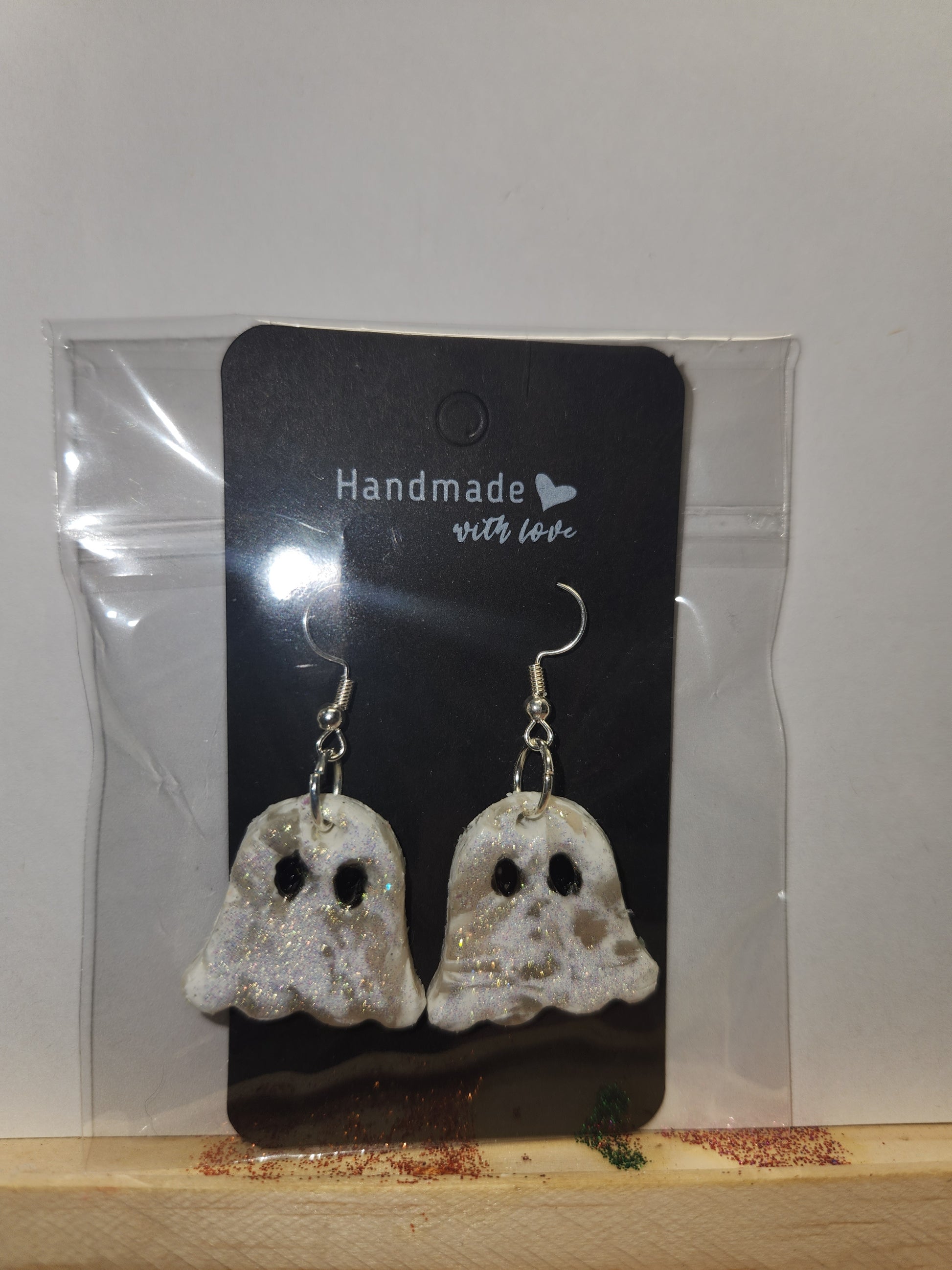 Sparkle Medium Sized Polymer Clay Earrings, White, pearl, transparent clays with sparkle finish on silver hooks.