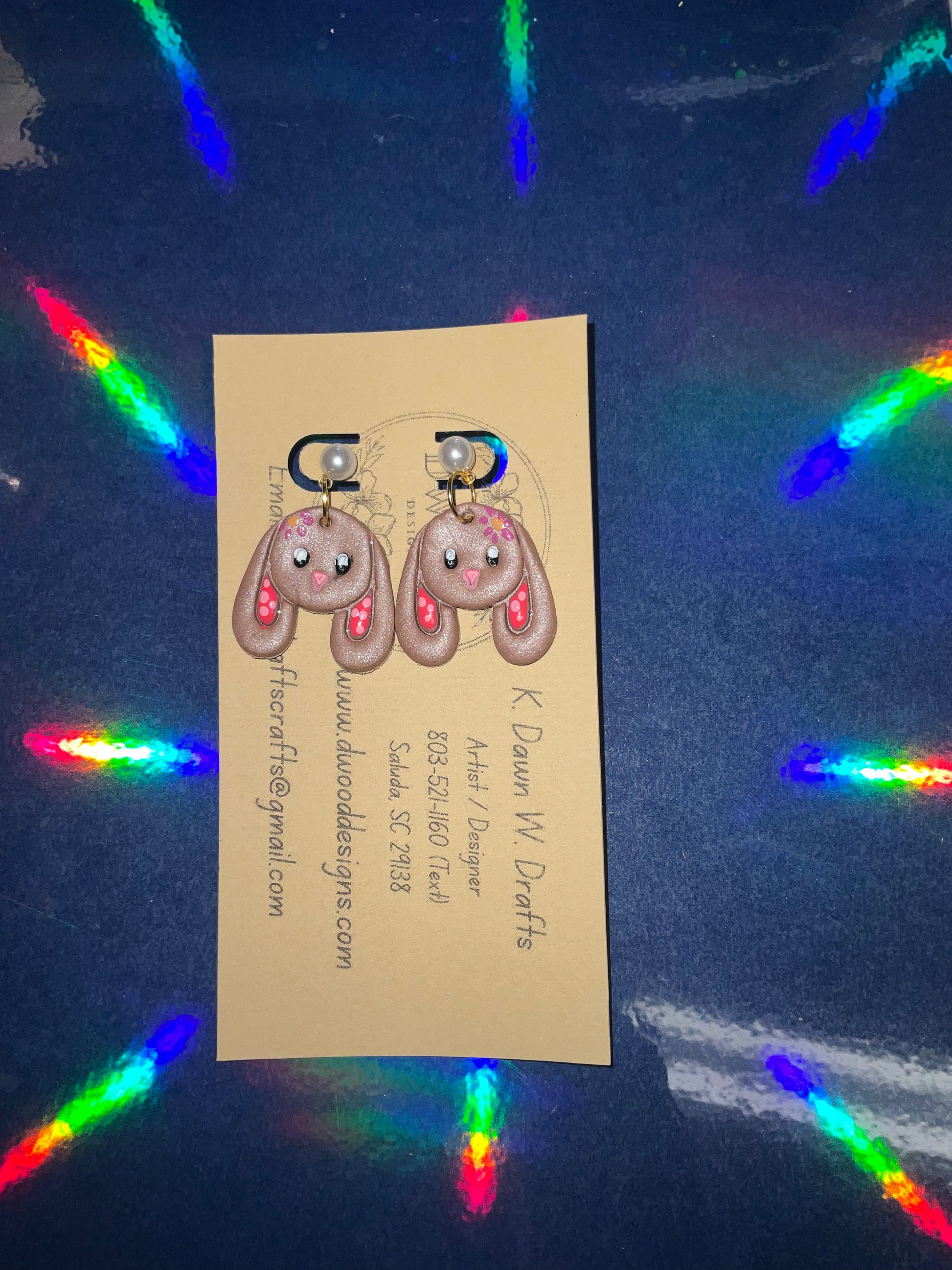 Little Girl Bunny drop diamond stud earrings handmade form polymer clay. Perfect for Easter time.