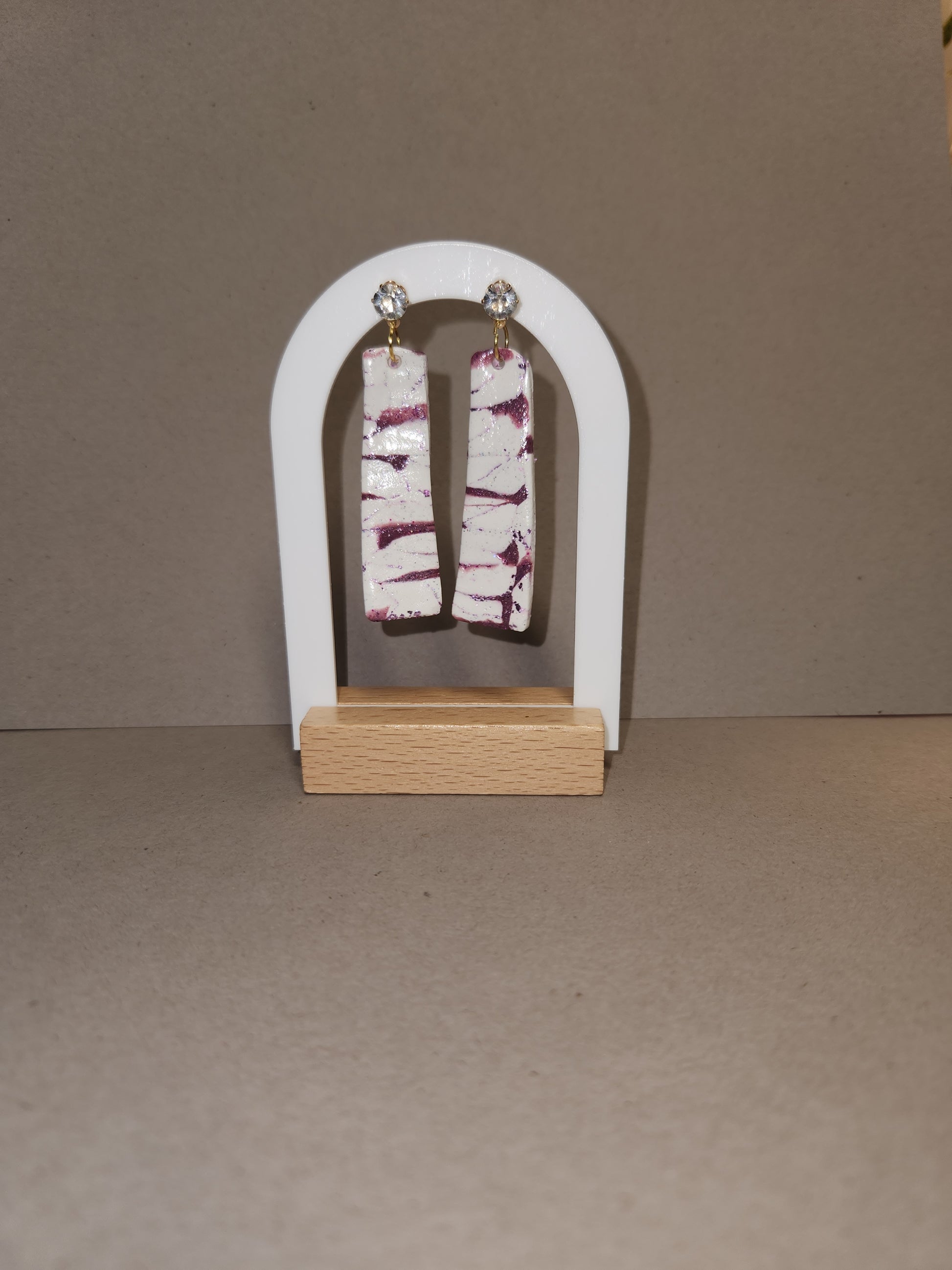 White and Purple Marble Clay earrings, handmade from Polymer Clay, with clear finish and "diamond" stud earrings fastener.